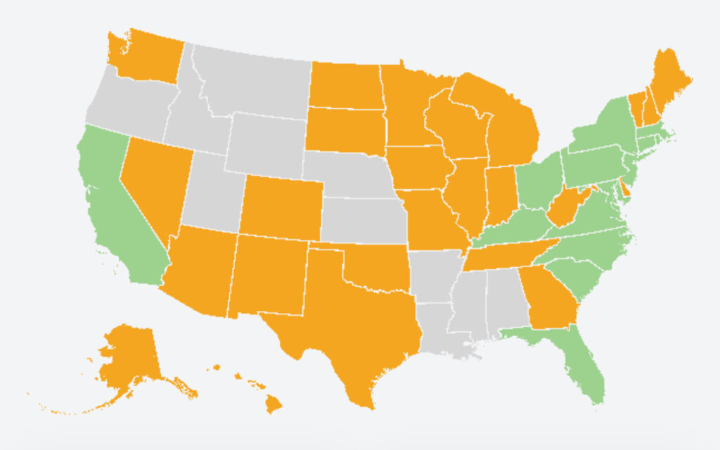 - Northeast: Connecticut, Massachusetts, New Jersey, New York, Pennsylvania, Rhode Island.